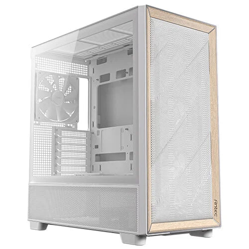 Antec FLUX Mid-Tower E-ATX Gaming Chassis Wood Front Panel, E-ATX Mid-Tower Form Factor, Solid Wood Birch Inlay, Includes 5-way ARGB & PWM Fan Splitter Hub, Designed for Extreme High-End Air/Water Cooling, Mesh Chambered Bottom Air Intake, 4mm Tempered Glass Side Panel, Supports E-ATX (330mm), ATX, Micro-ATX, Mini-ITX Motherboards, Supports ATX & Micro-ATX Hidden Reverse Connector Motherboards, 1x USB 10Gbps Type-C Port (Front Panel), 2x USB 5Gbps Type-A Ports (Front Panel), 1x 3.5mm Combination Audio Jack (Front Panel), Power Button, Reset Button, 1x 2.5″/3.5″ Combo Drive Bay (Removable), 1x 3.5″ Drive Bay (Removable), 1x 2.5″ Drive Bay, 7x Horizontal PCI Slots, 3x Pre-Installed Antec P12 PWM 120mm Fans (Front Intake), 1x Pre-Installed Antec P12 Reverse PWM 120mm Fan (Bottom Intake), 1x Pre-Installed Antec P14 PWM 140mm Fan (Rear Exhaust), Supports Up to 8x 140mm Fans, Supports Up to 420mm Radiator (Front), GPU Clearance: Up to 408mm, CPU Clearance: Up to 180mm, PSU Clearance: Up to 235mm (With HDD Cage), Full-Length Bottom Removable Dust Filter, Colour: White, 2 Year Limited Warranty
