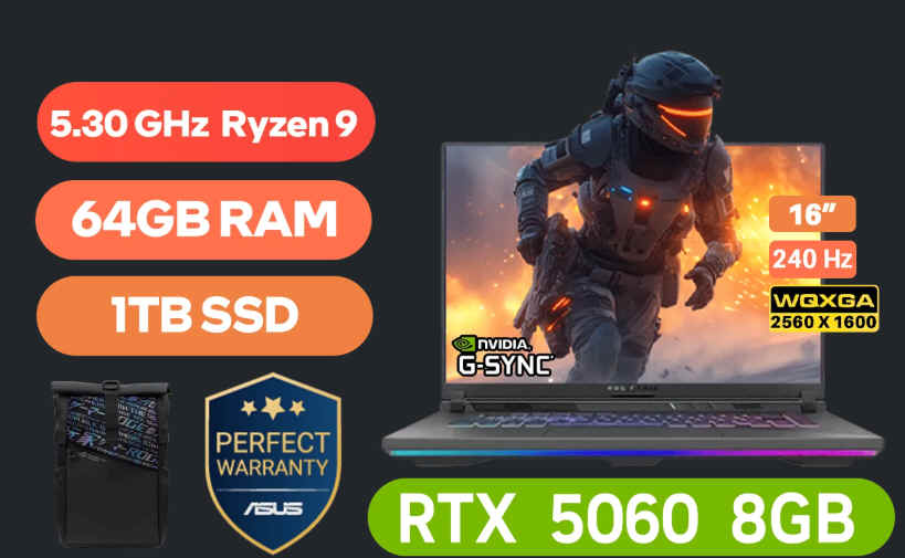 ASUS ROG Strix G16 G614PM AMD Ryzen 9 RTX 5060 Gaming Laptop G614PM-91610G0W/64GB
