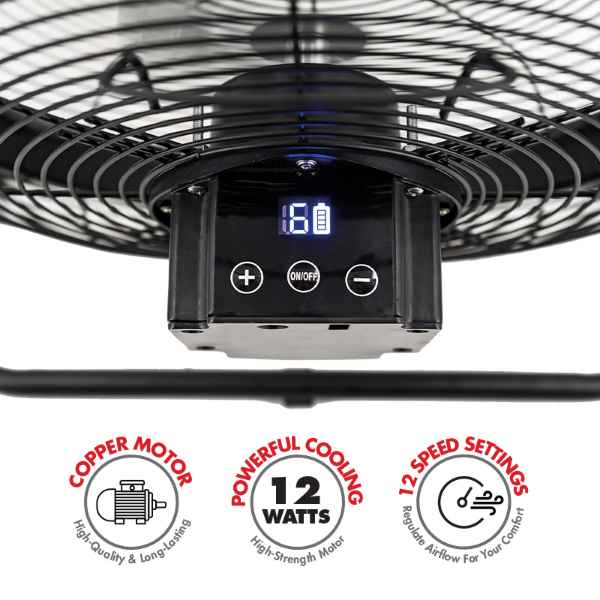 Enjoy this long-lasting, battery-operated portable fan with strong airflow and powerful cooling - perfect for cooling off during loadshedding! It has a high-quality, whisper-quiet 12W copper motor and high-performance aluminium Veloci-Tech blades to provide an instant, steady blast of cool air. Plus, it has a handy USB output port for emergency device charging, giving you the best of battery convenience.