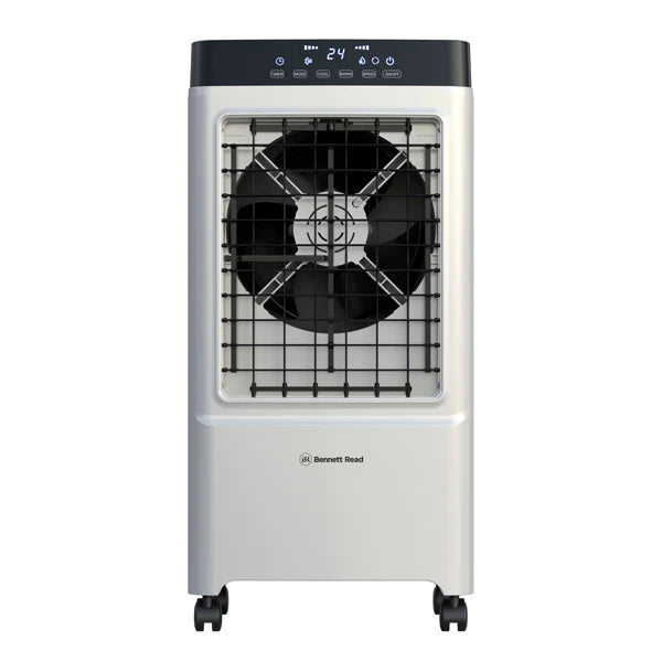 The 4-in-1 fan system that cools, purifies, refreshes & humidifies the air in your living spaces! Precision 4-in-1 cooling power with portable convenience. Instantly cool, purify, refresh & humidify your living spaces with the Bennett Read® 20l Air Cooler, your all-in-one, portable cooling solution. Designed with an extra-large 20l* water tank, handy timer function & full-feature remote control, so you can enjoy uninterrupted, evaporative cooling power for up to 14 hours! Refreshingly multi-functional. A powerful air cooler, fan, air purifier & humidifier all wrapped up in one energy-efficient, freon-free cooling system. Auto shut-off timer. Set & forget the programmable timer function for up to 24 hours of precision cooling. Adjustable air vents. Adjustable air vents with added auto-swing function that distributes cool air throughout the room for coverage of up to 16m2. Easy-to-use controls. Control airflow to suit your preferences with 2 handy ice bricks, 3 fan speeds & 3 convenient comfort modes, all at the touch of a button! Cool convenience. Smooth-glide wheels & built-in carry handles for easy portability & storage. Convenient, full-feature remote control included. Easy to maintain & store. Extra-large water tank with easy-empty outlet, plus washable filter for effortless maintenance. Extended warranty. Your Bennett Read® 20l Air Cooler comes standard with a 1 year warranty.