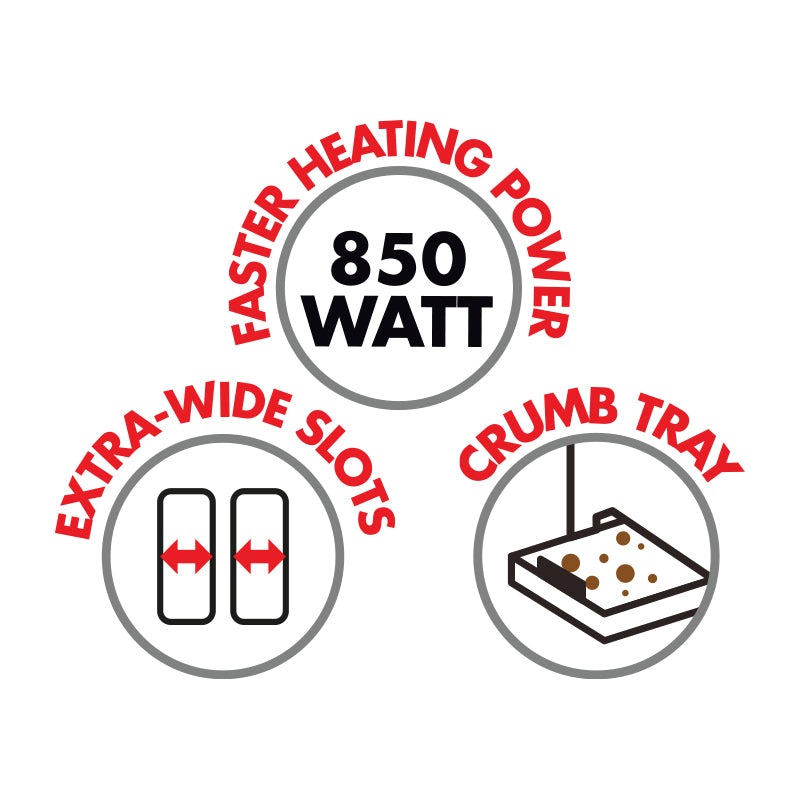 - Extra-wide slots to fit most types of bread & thick bagels