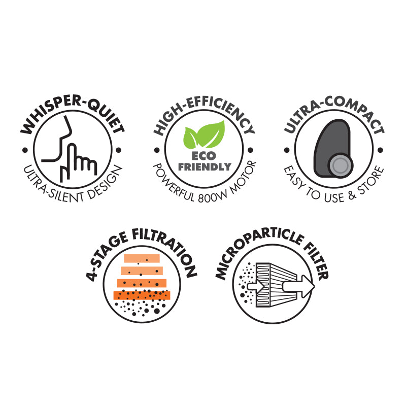 - High-efficiency 800W motor provides exceptional suction with minimal energy use