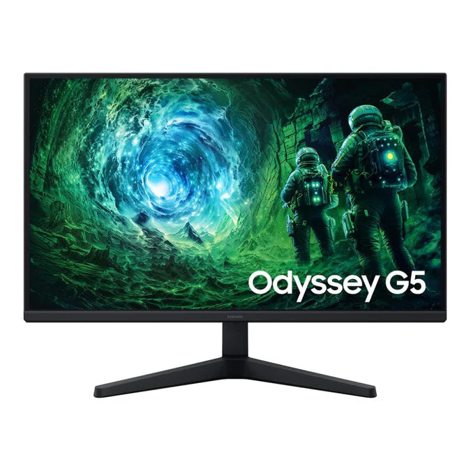 Samsung Odyssey G5 G53F 200Hz 2560 x 1440 QHD Flat Gaming Monitor Step into a game world that's more vibrant and immersive than ever before. With 1.7 times the pixel density of QHD resolution (2560x1440) boasts incredibly detailed, pin-sharp images. Now you can take in the action in more detail on the same-sized screen. Heighten your gaming experience with precise and radiant colors. With its wide 178º viewing angle, the IPS panel consistently delivers rich hues across various viewpoints, bringing your games to life with stunning vibrancy. Enjoy brilliant visuals with improved contrast and color accuracy. HDR10 provides brighter highlights and nuanced shadow for added depth - making scenes feel more realistic. Elevate your gaming sessions to new heights with upgraded speed and performance. The 200Hz refresh rate delivers sharper visuals for clearer gameplay, while the near-instant 1ms response time (MPRT) ensures that movements are captured in real-time for unbeatable precision. Keep your fast-action games fluid with variable refresh rate (VRR) and AMD FreeSync Premium. The synced GPU and panel reduce choppiness, screen lag and image tears, setting you up for even the most intense gaming sessions. Start gaming faster with Auto Source Switch. Your monitor instantly switches to the new source signal when you connect a device, so you don't have to flip through multiple input sources to get game-ready. Specifications: Aspect Ratio: 16:9, Brightness (Typical): 300 cd/㎡, Contrast Ratio (Static): 1000:1 (Typ.), Resolution: QHD (2560 x 1440), Response Time: 1 ms (MPRT), Viewing Angle (Horizontal/Vertical): 178°/178°, Refresh Rate: Max 200 Hz, Screen Size (Class): 27-inch, Flat/Curved: Flat, Panel Type: IPS, Eco Saving Plus: Yes, Eye Saver Mode: Yes, Display Port: 1 EA, Display Port Version: 1.4, HDCP Version (DP): 2.2, HDMI Ports: 2 EA.