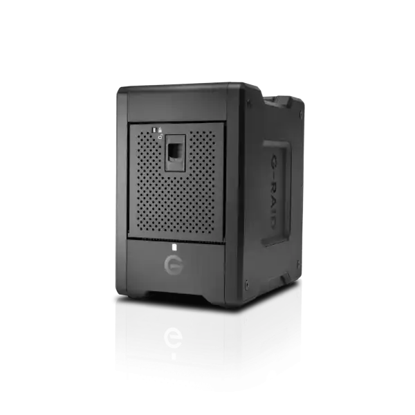 A transportable 4-bay hardware RAID solution with Thunderbolt 3 (40Gbps) and USB-C™ (10Gbps) interfaces offering content professionals up to 88TB1 of massive capacity and high-powered performance for consolidated backup, super-fast access, and real-time video editing. Supports multi-stream 4K, 8K, and VR workflows, RAID 0, 1, 5, and 10 configurations, and provides transfer rates up to 640MB/s read and 800MB/s write2 in default RAID 5. Along with Ultrastar enterprise-class hard drives inside for enhanced reliability and a trusted 5-year limited warranty, the G-RAID SHUTTLE 4 is the ultimate storage solution for demanding video workflows on location and in the studio.