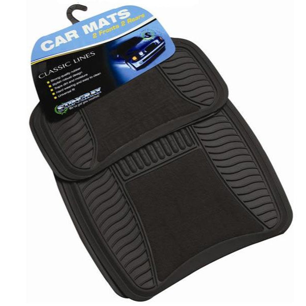 4Pce Rubber/Velour Mat Set Black (ZSMATTT8110BK)
