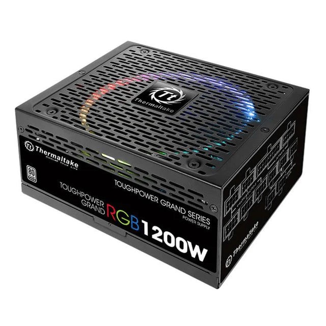 Thermaltake Toughpower Grand RGB 1200W Platinum. Total power: 1200 W, AC input voltage: 100 - 240 V, Peak power: 1440 W. Motherboard power connector: 24-pin ATX, Motherboard power cable length: 60 cm, SATA power cable length: 150,500 mm. Purpose: PC, Power supply unit (PSU) form factor: ATX, 80 PLUS certification: 80 PLUS Platinum. Product colour: Black, Fan diameter: 14 cm, Number of fans: 1 fan(s). Width: 150 mm, Depth: 180 mm, Height: 86 mm