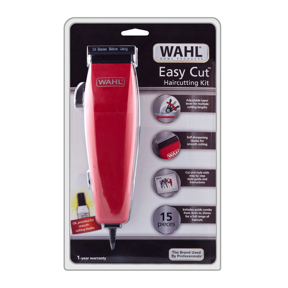 The Wahl Easy Cut 15-piece complete hair clipper kit is perfect for performing professional quality haircuts at home. The adjustable Taper Lever varies the cutting length for creative styling.