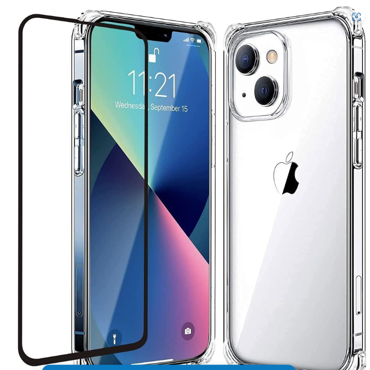 World Choice Clear Pouch Gel Case & 9D Tempered Glass for Apple iPhone 13